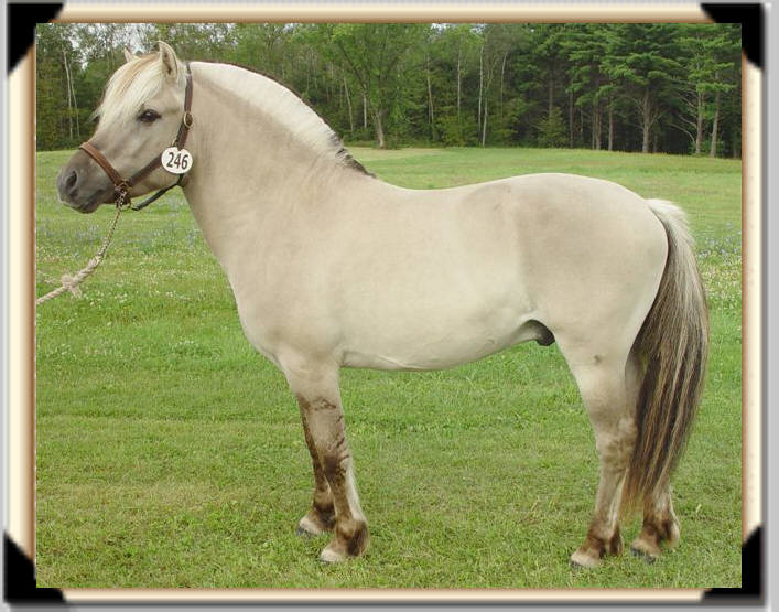 Raspotnik Farm Stallions Norwegian Fjord Stallion Eitan (Erlend x Tanja) Born in 2000 Eitan received a Blue Ribbon in his evaluation on conformation and movement with a score of 83pts. He is ranked in the Top Ten of US Evaluated Fjord Stallions. He is very athletic and his movement is exceptional, with a very long extended trot and a long overstriding walk. He has a good temperament, is very kind, yet has lots of energy. We use him for riding and driving. Eitan received a Silver Medallion in driving at the 25th Fjord Registry Anniversary at Winona in 2006