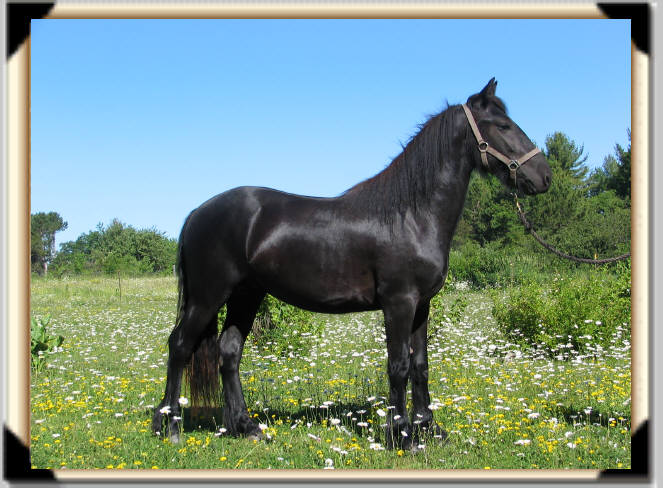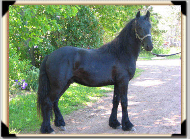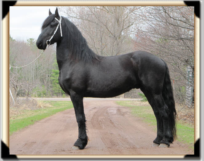 Friesian Stallion Coby is our Purebred Friesian Stallion. He has a very clam, easygoing temperament. He is trained to ride and drive and floats along at a high stepping trot. Stud Service Fee: $500.00 LFG |