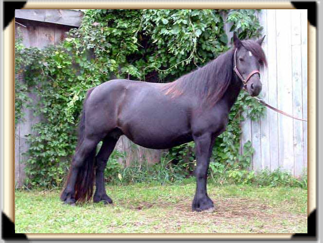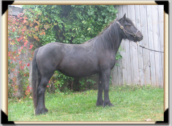 (Swayfield Prince x Summerplace Daisy) Section A Dales Pony mare. Imported from England. 14.hh. Quiet, easy going mare. Lots of feather. Charlotte